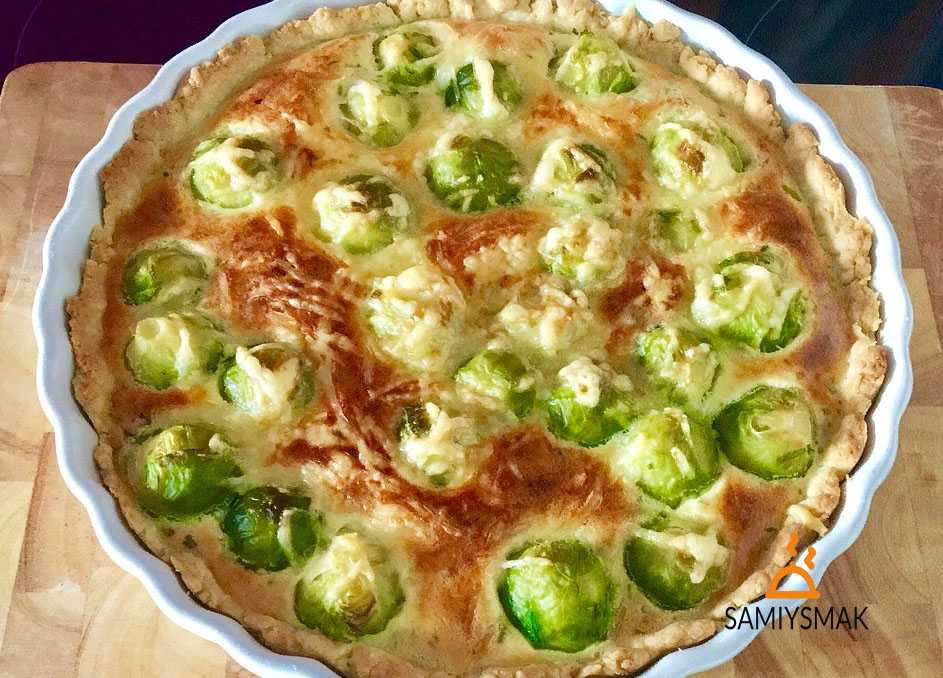 Главная героиня рецепта – брюссельская капуста. Аппетитный французский пирог по нраву гостям. Нарежьте киш как пиццу, на 6 или 12 кусочков.