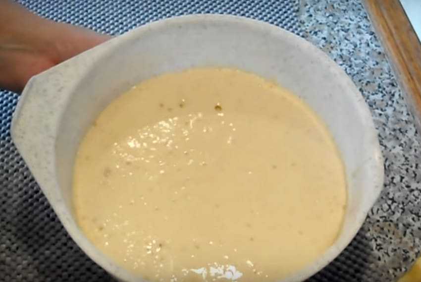 - Тесто по консистенции будет, как густая сметана, оно будет медленно сползать с перевернутой ложки.
