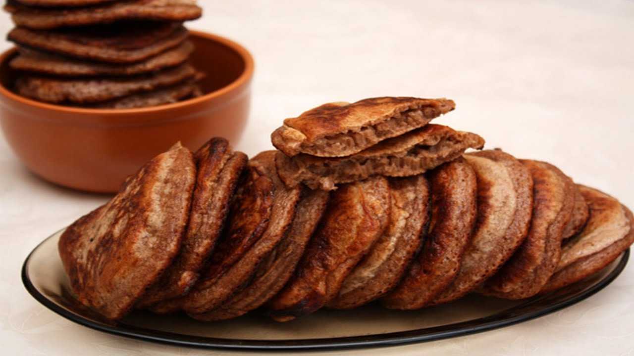 - Выпекать оладьи на одной стороне, пока сверху не начнут образовываться и лопаться пузырьки, а потом немного на другой.