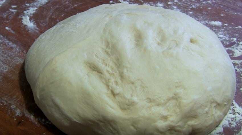 6.Готовую основу соберите в шар и положите в миску. Накройте пленкой и поставьте в тепло на 1-1,5 часа для подъема.