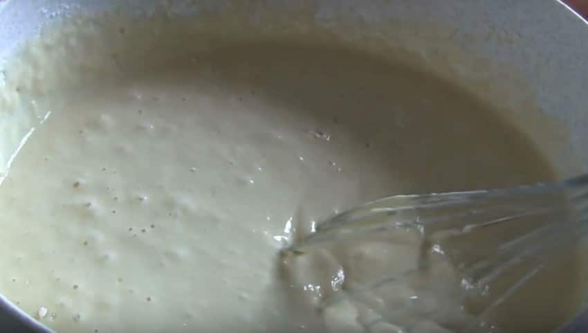 10. Влить опару, которая уже превратилась в высокую шапочку.