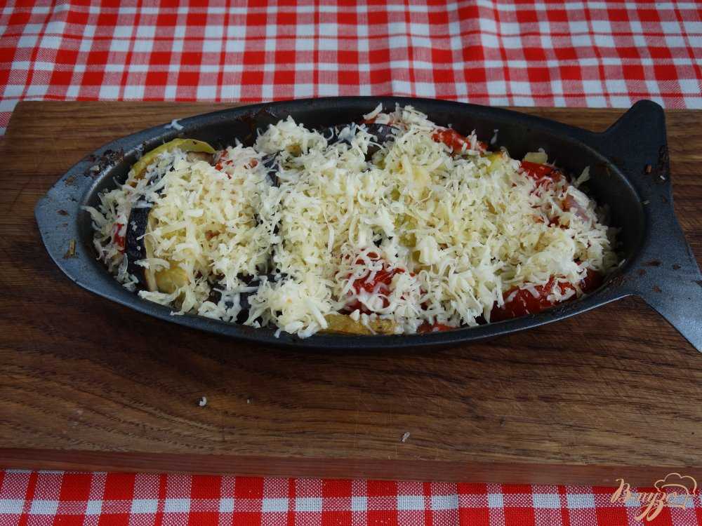 После этого открываем фольгу, посыпаем блюдо натертым сыром. И допекаем рататуй еще 5 минут.