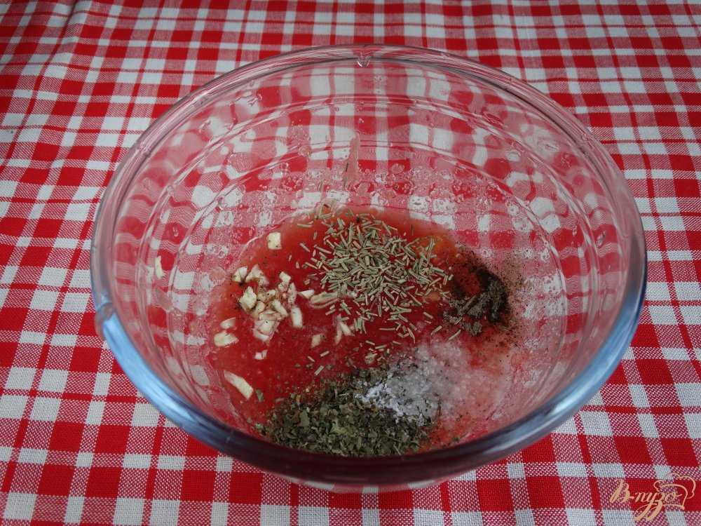 Добавляем соль, перец, измельченный чеснок, сушеный базилик и розмарин. Все перемешиваем.