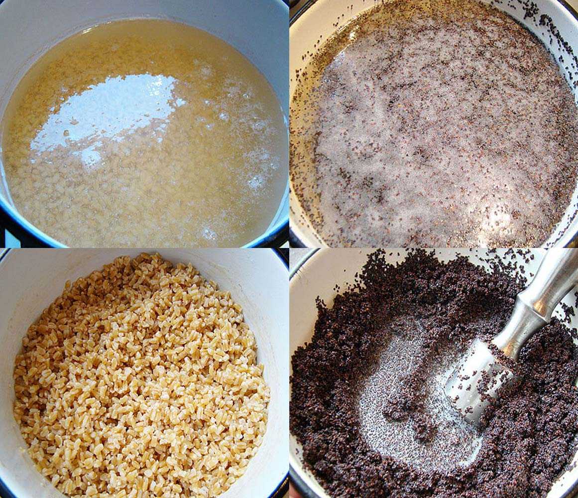 - Разложите пшеницу (1 ст) и мак (100 г) по разным мисочкам и залейте холодной водой на ночь.