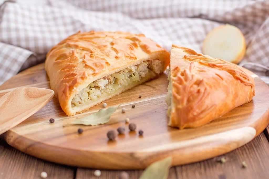 Закрываем пирог, переплетая надрезанные концы теста. Укладываем рыбник в смазанную форму и отправляем в разогретую до 190 градусов духовку. Выпекаем 1 час. Подаем горячим.