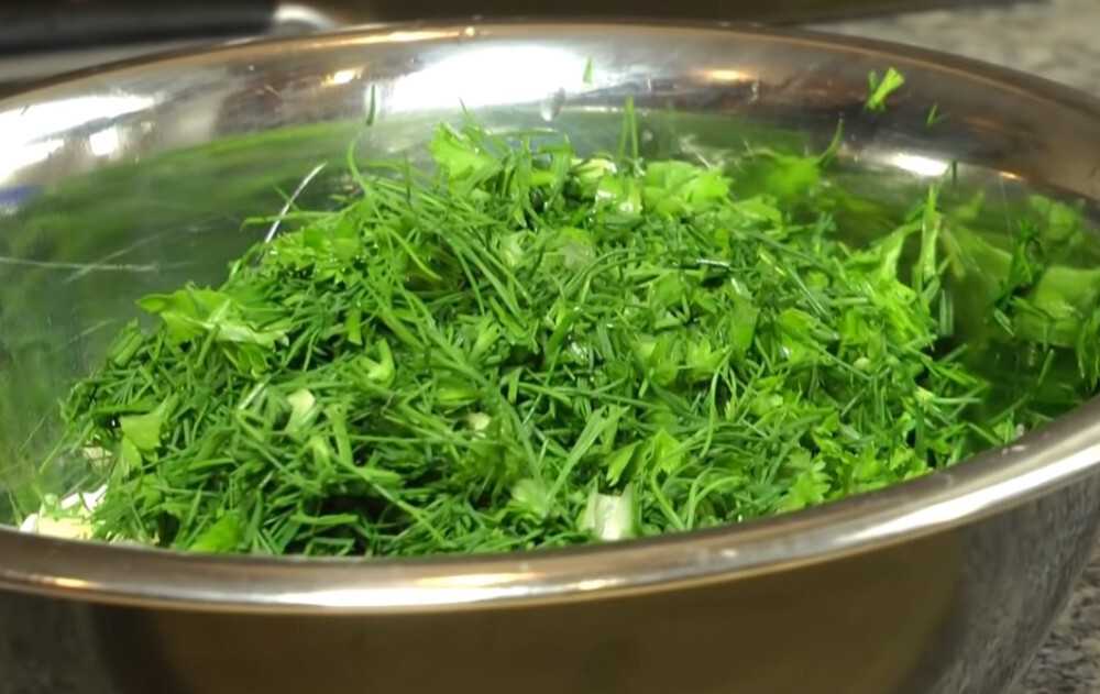 - Промытая под проточной водой зелень укропа подсушивается с помощью чистого полотенца и мелко рубится.