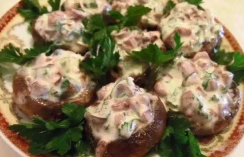 - Соединить соус с остывшими овощами, распределить их по шляпкам шампиньонов.