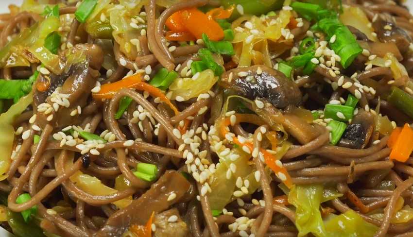Вот и все, вкусные спагетти с шампиньонами с соевым соусом готовы!