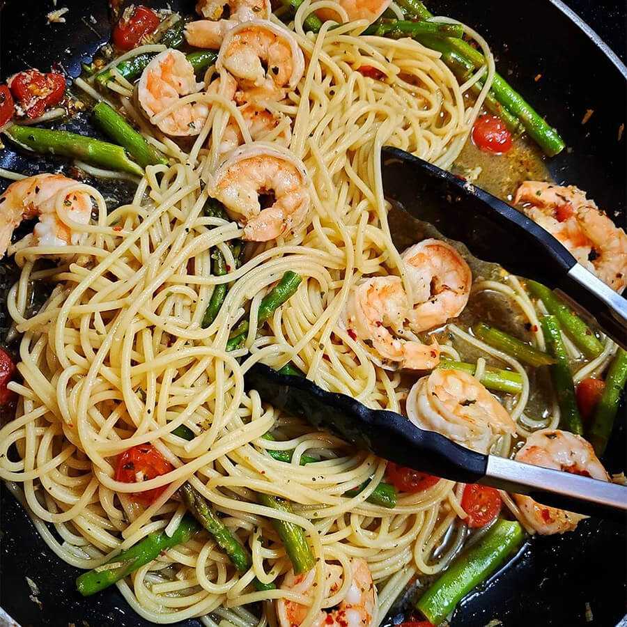 Любите креветки? Тогда обязательно попробуйте спагетти с креветками пп. Вам понадобятся такие ингредиенты: