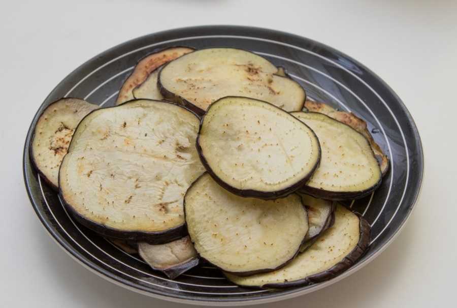 | 1 | Нарезка баклажанов. | На усмотрение повара можно резать овощи вдоль крупными ломтиками, или поперек кругляшками. Большинство кулинаров предпочитают очищать кожицу, но в классическом рецепте баклажаны добавляют в блюдо со шкуркой. В процессе готовки она размягчается и не мешает наслаждаться готовым блюдом. | Чтобы овощи не горчили, после нарезки продержите их 20-30 минут в «соляной ванне» (на 1 литр воды 2 ст.л. соли). После процедуры просушите дольки бумажным полотенцем. |