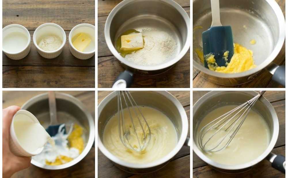 | 5 | Приготовление соуса | На сковороду выкладывают сливочное масло и немного прогревают. Затем добавляют к маслу муку и жарят до золотистого цвета. Потихоньку к смеси вливают молоко, помешивают, и доводят массу до консистенции жидкой сметаны, после чего снимают с огня. Яйца немного взбивают и быстро вливают в приготовленную смесь. Осталось добавить натертый сыр, приправить соус мускатом и солью, и еще раз тщательно перемешать. | Основу готовят на минимальном огне, постоянно помешивая. Молоко и яйца добавляют аккуратно, чтобы они не свернулись раньше времени. |