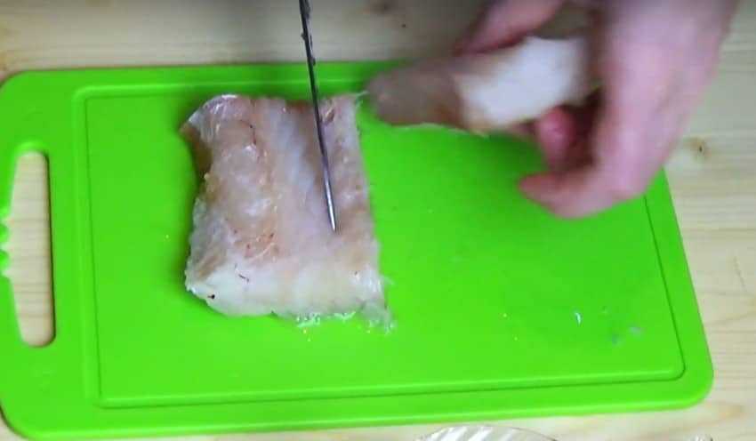Для начала подготовим рыбу. Очистим ее от чешуи и кожи. Если требуется, отрежем плавники и головы, вынем внутренности.