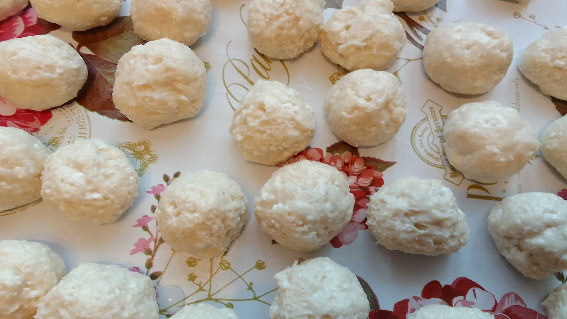 Из указанного количества ингредиентов получится тесто, которого хватит на 40 шариков. Не бойтесь, это совсем не много и они быстро закончатся. Еще и новую партию слепить попросят.