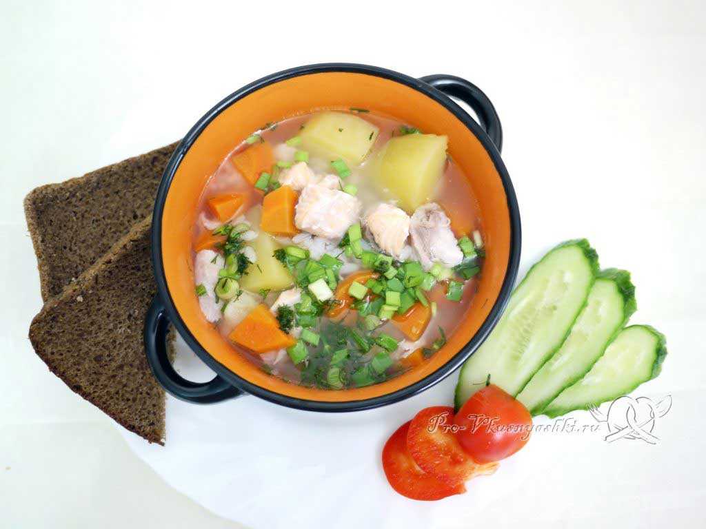 - Рыбный суп из лосося подают после того, как он настоится под крышкой 15 минут.