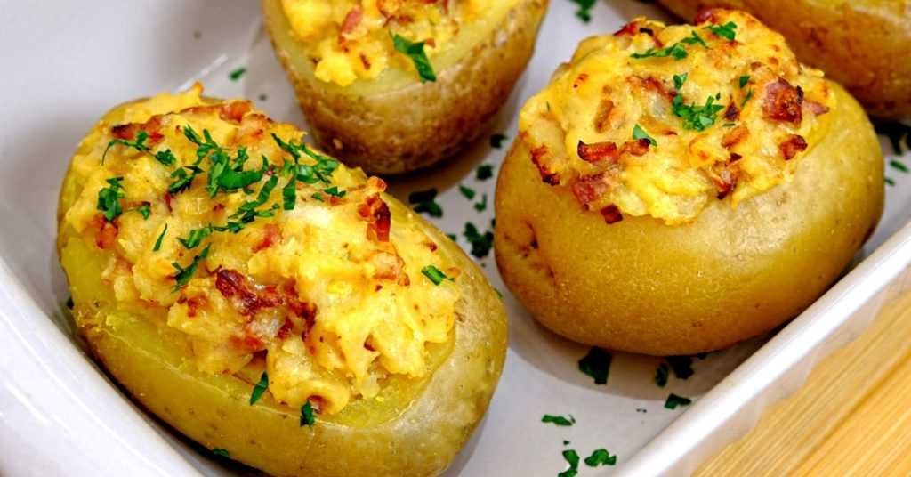 Посмотрите, как аппетитно выглядит фаршированная картошка с грибами, запеченная в духовке, на этих фото: