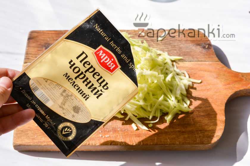 7. Всю массу очень хорошо перемешайте руками. Оставьте минут на десять, чтобы соль и перец равномерно распределились. После этого немного сдавите руками натертый кабачок, сок же, который будет образовываться, слейте. Соль с перцем ускорят процесс выделения кабачком сока, который обязательно нужно слить, иначе запеканка получится чересчур влажной. В подходящую формочку для запекания, смазанную растительным или растопленным сливочным маслом, выложите весь натертый овощ, чередуя слои кабачков и сыра.