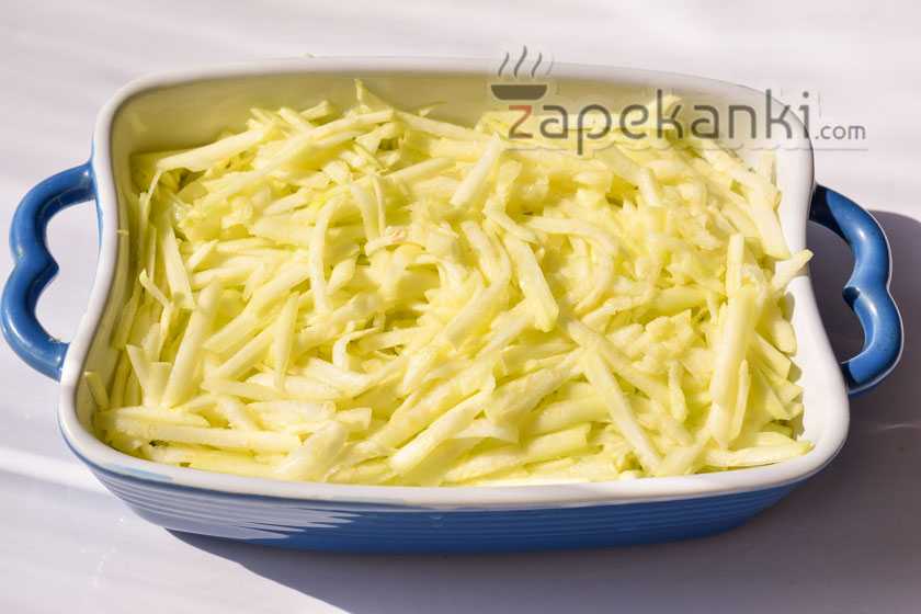 Овощная запеканка с кабачками, картошкой и фаршем в духовке