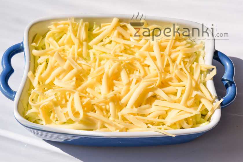 8. Сверху хорошенько присыпьте оставшимся сыром, он даст аппетитную и равномерную корочку.