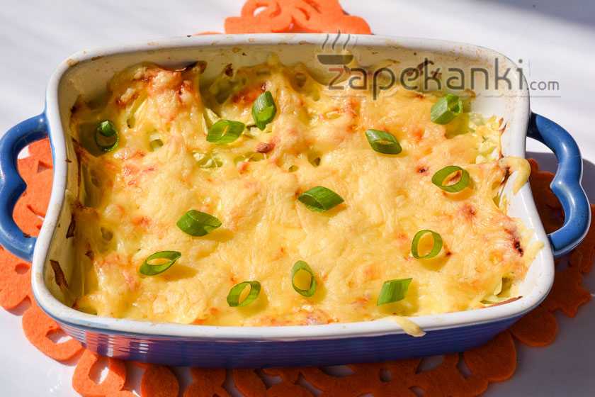 Сверху посыпаем тертым сыром. Запекаем в духовке около 30 минут. К столу подаем в горячем виде.
