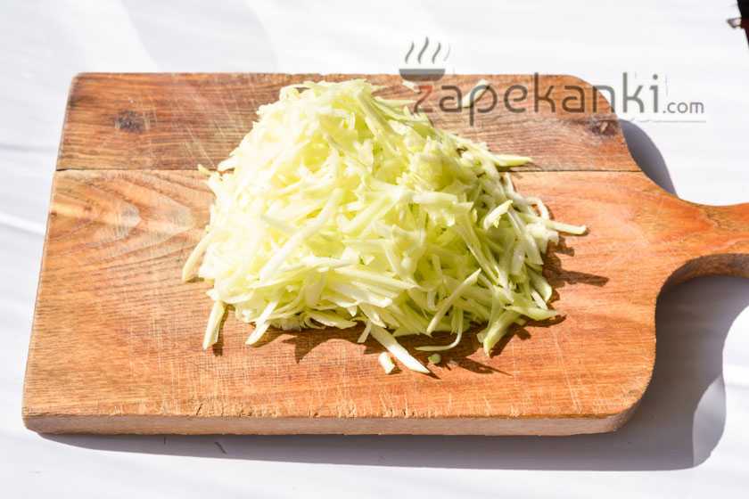 4. Итак, подготовленный кабачок натрите на крупной терке.