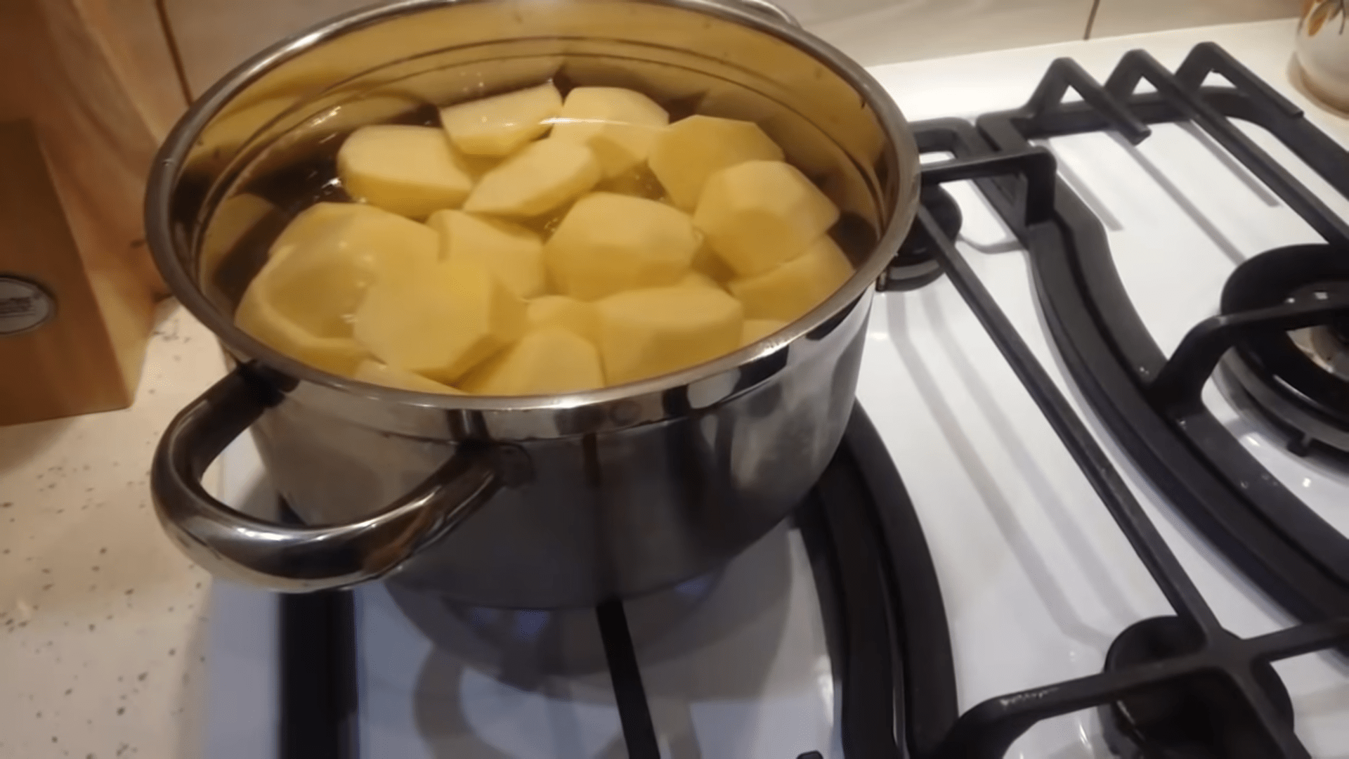 Картофель ставим вариться — будем делать из него пюре (варим как на обычное пюре).