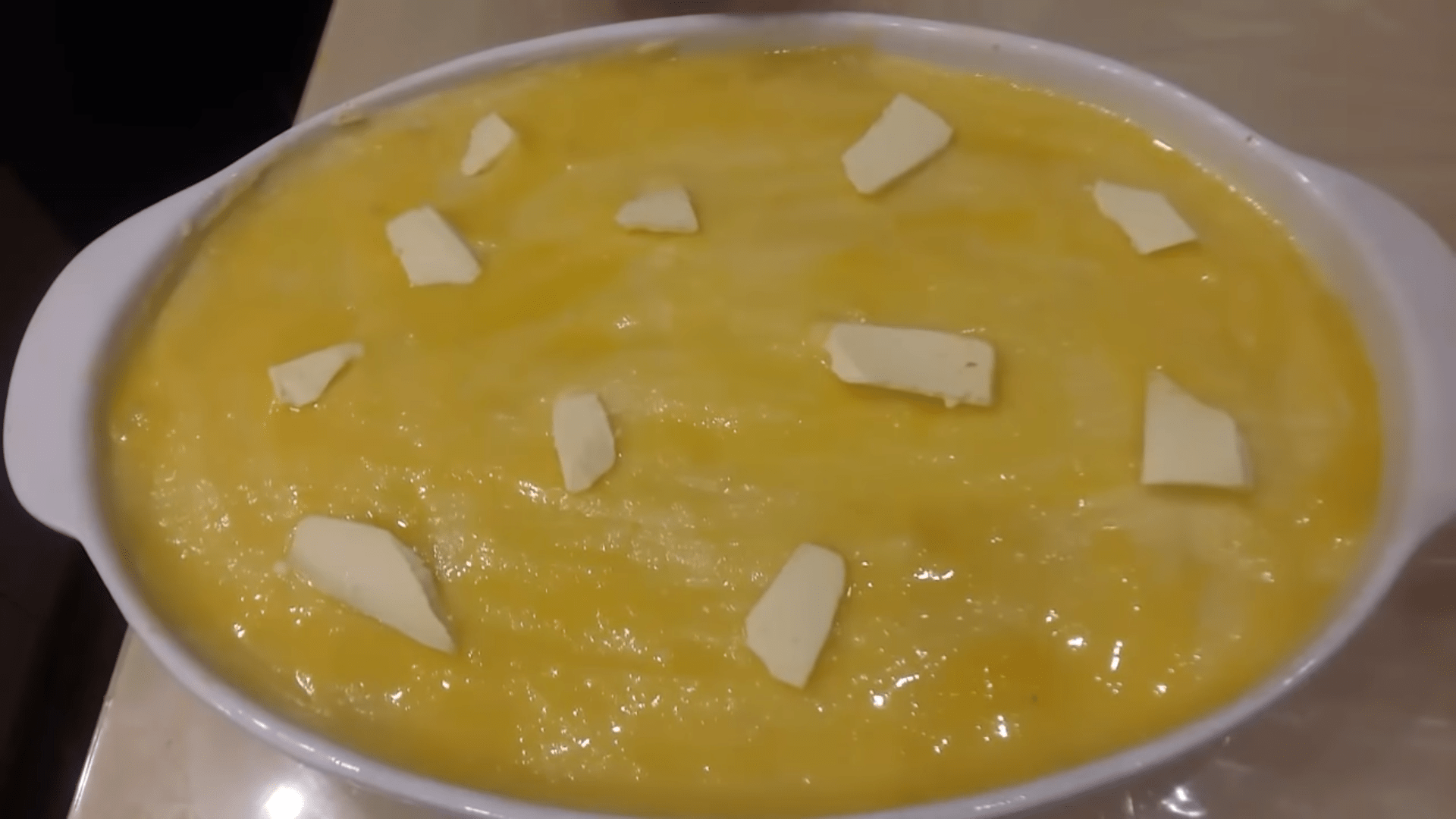 Желтком мы смазали запеканку и теперь кладём немного кусочков сливочного масла.