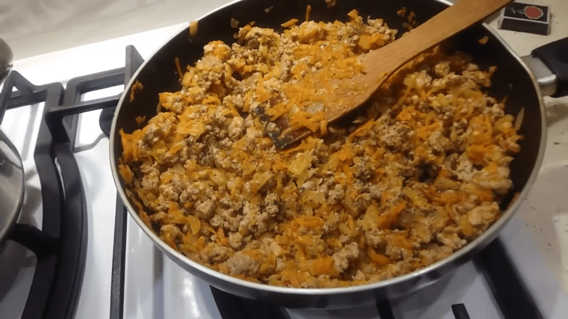- Обжаривание начинки. Рубленое мясо или фарш стоит обжаривать в отдельной сковороде, как и остальные ингредиенты для начинки. После чего соединить их вместе. Таким образом сохранится вкус каждого составляющего блюда, что придаст ему неповторимый аромат.