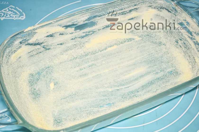 3. А пока можно смазать форму для запекания сливочным или растительным маслом и обсыпать манкой или мукой. Если используете силиконовую форму, ее можно не смазывать.