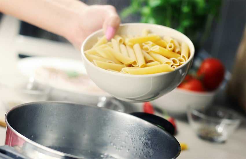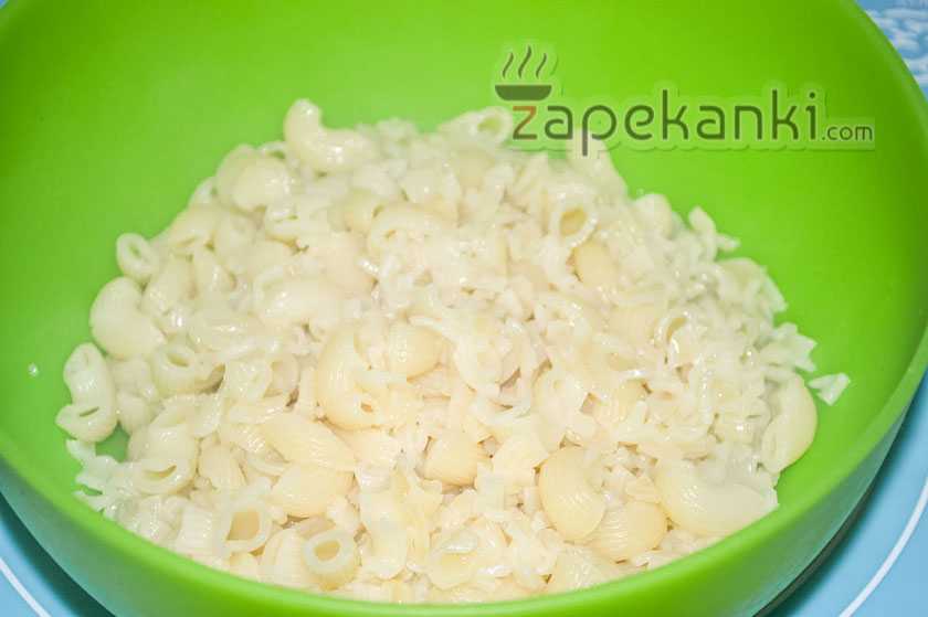 Так как обычно запекают смесь предварительно отваренных ингредиентов, то нужно сначала научиться правильно варить макаронные изделия. Рекомендуемое соотношение воды и сухих макарон: 10 к 1. Солить воду нужно по вкусу. Кастрюля должна быть вместительной, во время варки макароны разбухают.