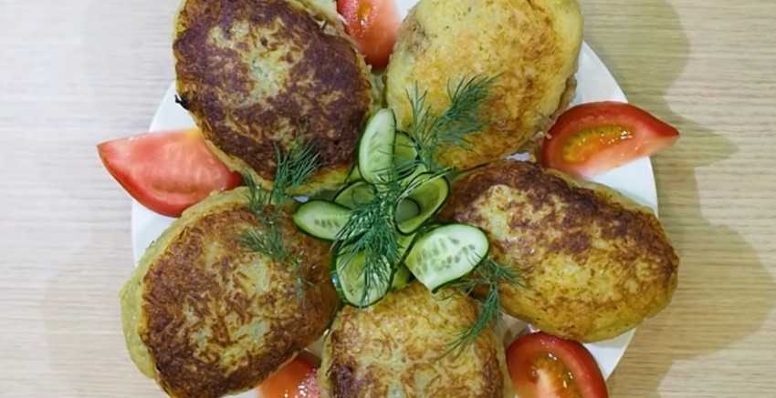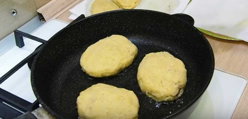 На сковороду, смазанную маслом, вкладывать небольшие лепешки из картофельного теста.