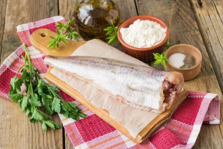 - Минтай промыть, промакнуть бумажным полотенцем, при необходимости удалить оставшиеся косточки.