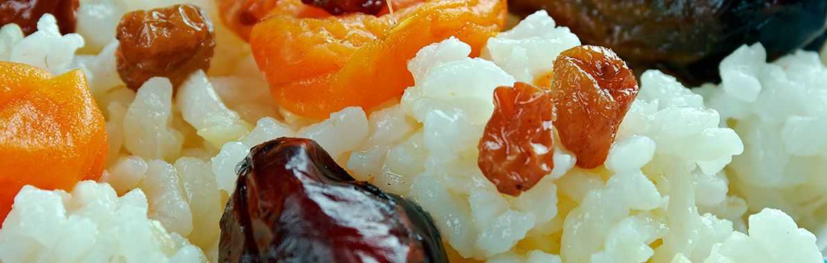 Рис хорошенько промываем в проточной воде, а затем даем ему просохнуть. Чернослив, изюм и курагу при необходимости замачиваем в теплой воде и оставляем примерно на полчаса, а затем хорошенько промываем. Если сухофрукты достаточно мягкие то их достаточно просто промыть и тоже обсушить.