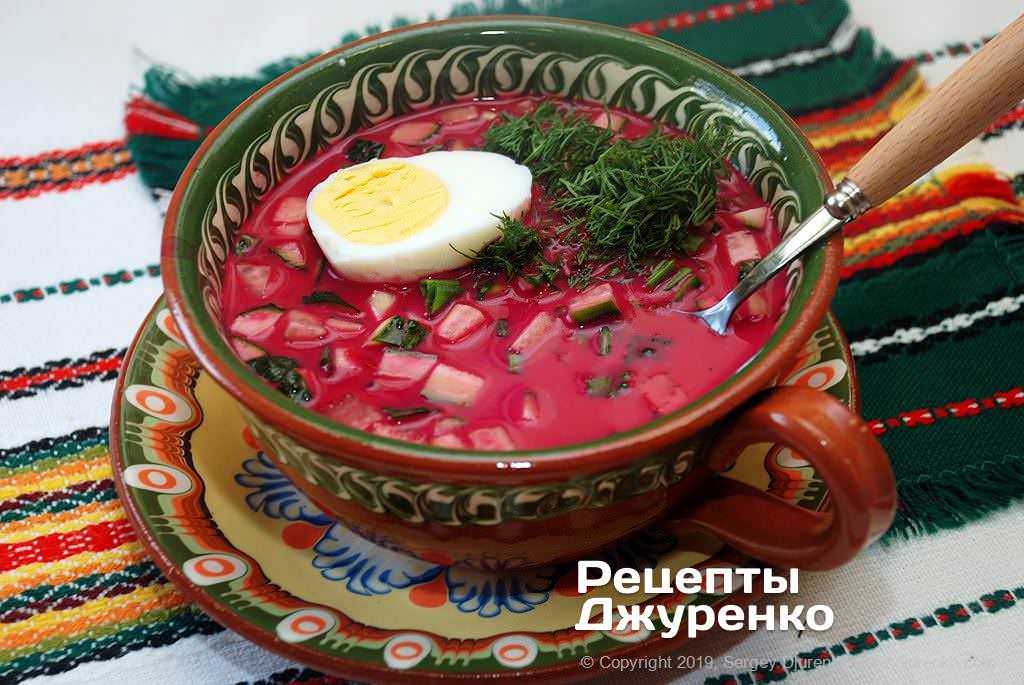 Холодный борщ – прекрасный суп, утоляющий голод, но не утяжеляющий желудок. Вариантов приготовления много, используют помимо свеклы и другие продукты: например, колбасу, рыбу, овощи и прочие. Начнем с классического рецепта холодного борща, который всегда можно адаптировать под свой вкус.