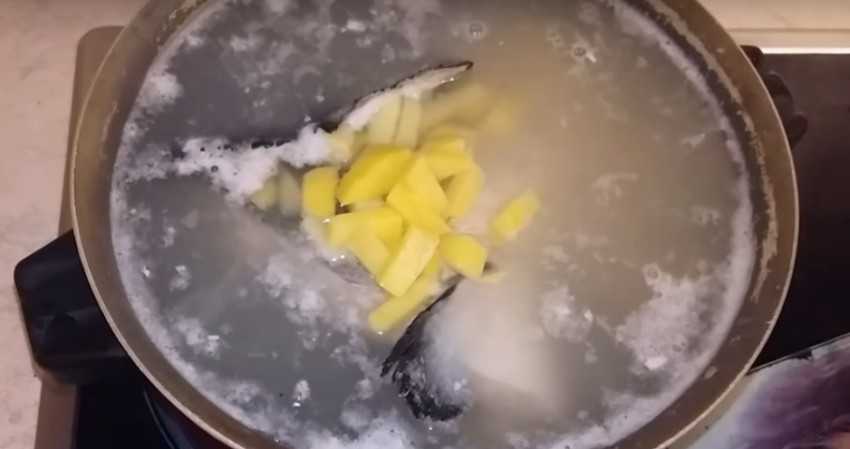 - После того как рыба будет готова, в уху добавляют картошку, морковь и лук.