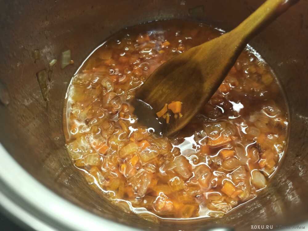 - добавляем лук и морковь в чашу мультиварки с разогретым растительным маслом;