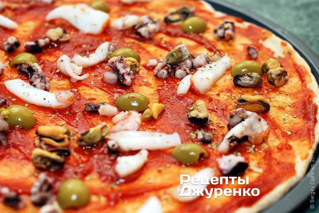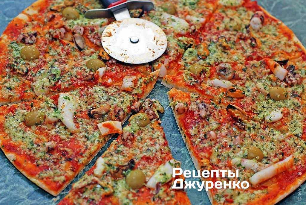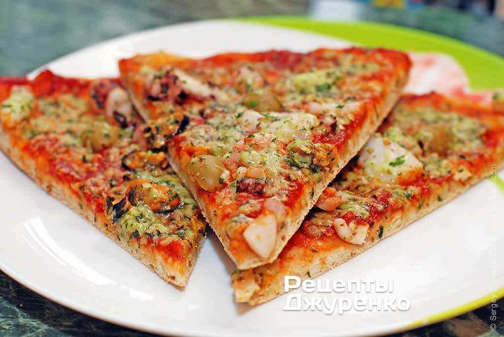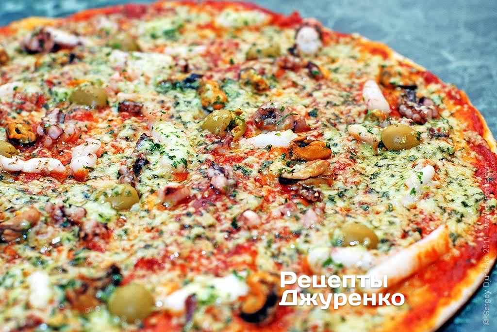 Простота приготовления и разнообразие рецептур помогли пицце завоевать известность у всех слоев населения. Сегодня она уже не воспринимается как классическое блюдо итальянской кухни, а входит в основное меню европейцев, американцев, японцев… Оценили пиццу и россияне. Сегодня делаем пиццу с рыбой и кальмарами на тонком тесте.