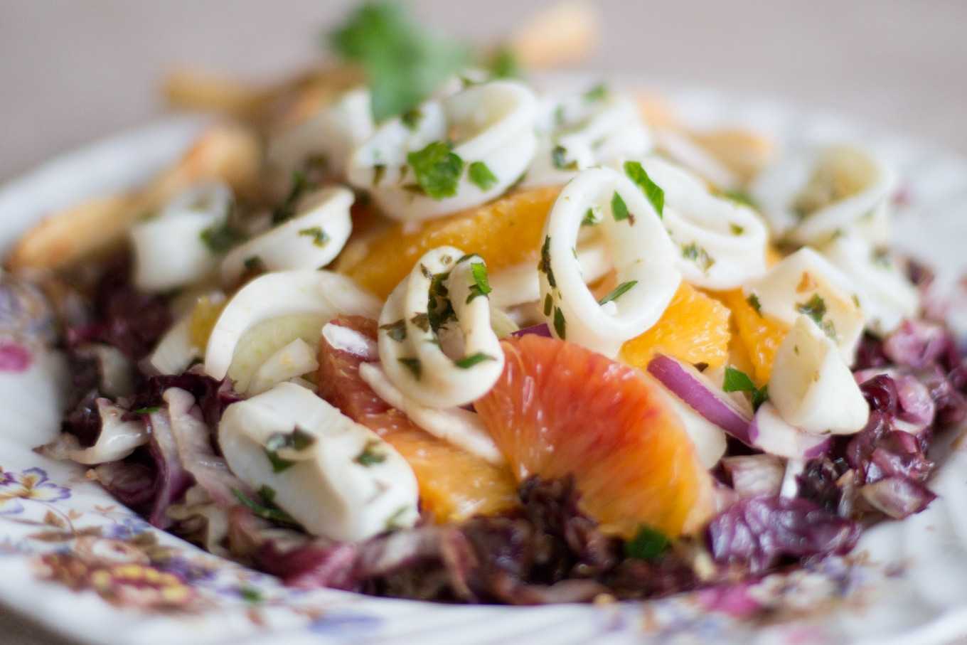 Салат из кальмаров с луком