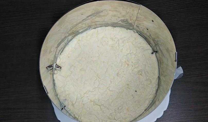 Следующим слоем сделать ветчину, покрыть ее оставшейся майонезной заправкой.