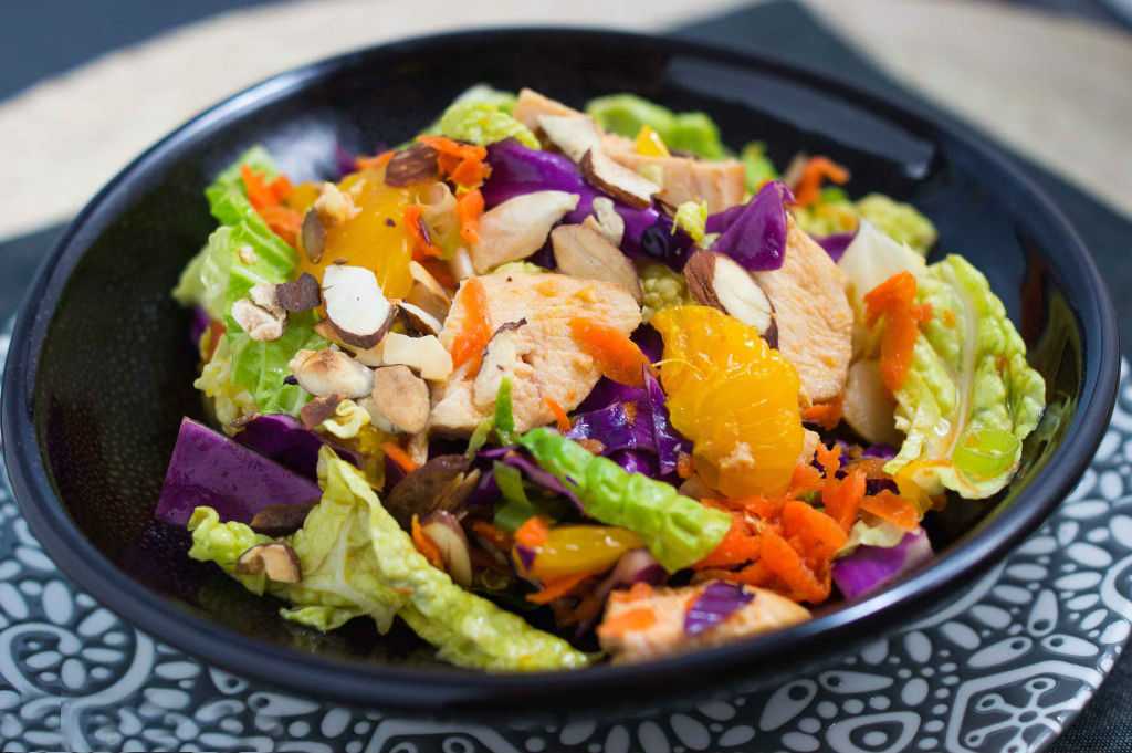 Курица хорошо сочетается со сладкими фруктами. Так, многим нравятся салаты с добавлением ананасов, яблок, апельсинов. Получается интересное созвучие контрастных вкусов. И в этом рецепте как раз будет все: и соль, и сладость, и кислота, и остринка.