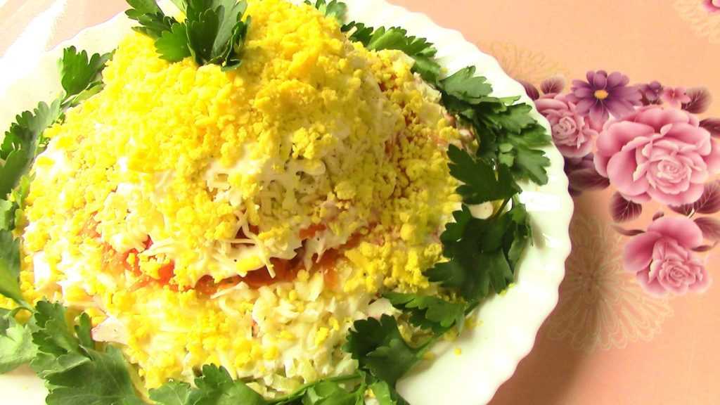 Вариант 1: Классический рецепт салата «Мимоза» с крабовыми палочками