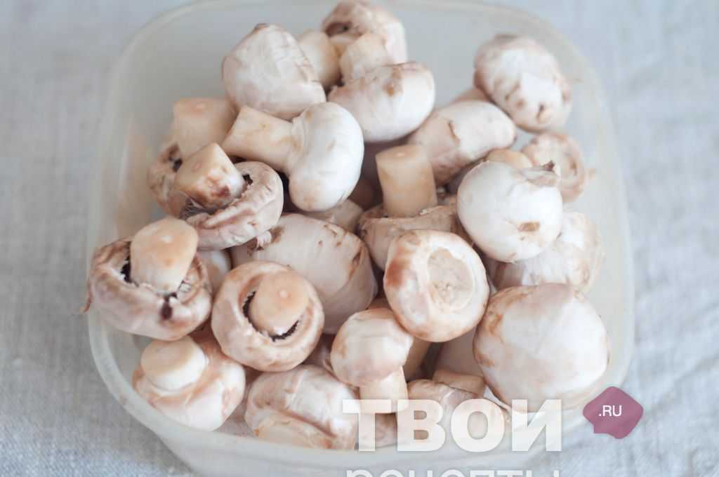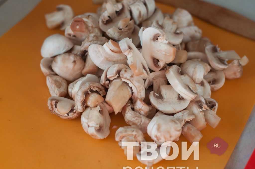 Грибы можно любые. У меня шампиньоны, их нужно промыть и очистить хорошо