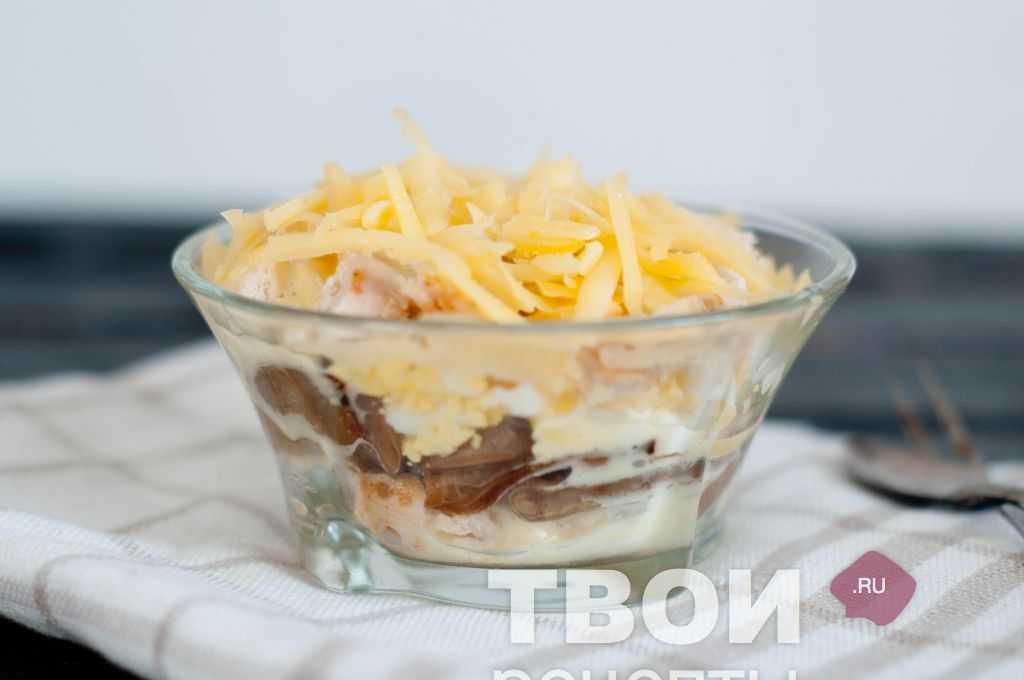 Рецепт 1: куриный салат с сыром и грибами слоями