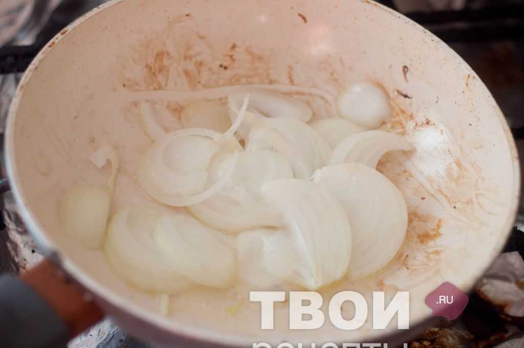 - Шампиньоны, обжаренные с луком — 200 г