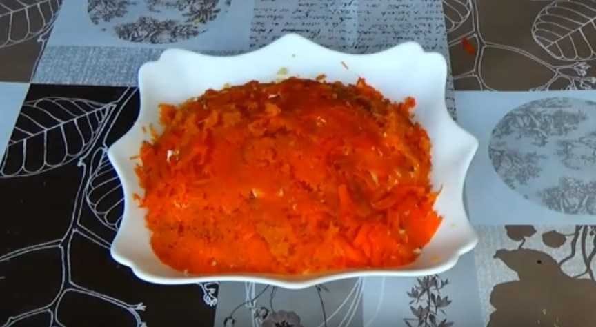 Заранее отварите яйца вкрутую и морковь до готовности. Очистите, остывшую до комнатной температуры, морковь от кожуры. Теперь подготовьте отдельные миски или тарелки, в которые вы будете натирать компоненты. Первым делом натрите на крупной терке отваренную морковь.