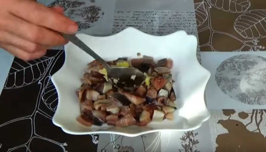 - Филе сельди разрежьте на маленькие порционные кусочки. Если попадутся косточки – обязательно вытаскивайте их.