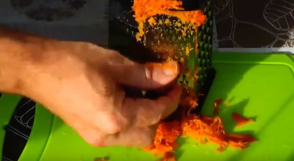 Твердый сыр любого сорта, но, конечно же, вкусный, тоже, как и морковь, натрите на крупной терке.