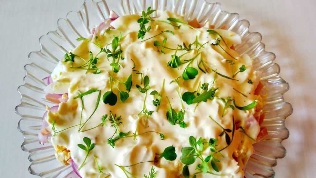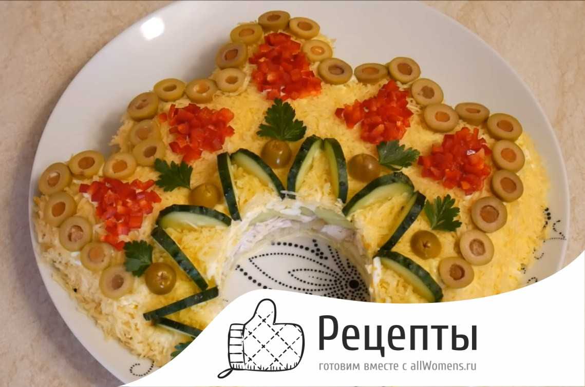 Салату желательно дать пропитаться в холодильнике в течении 1 часа, как это происходит со всеми слоеными салатами.