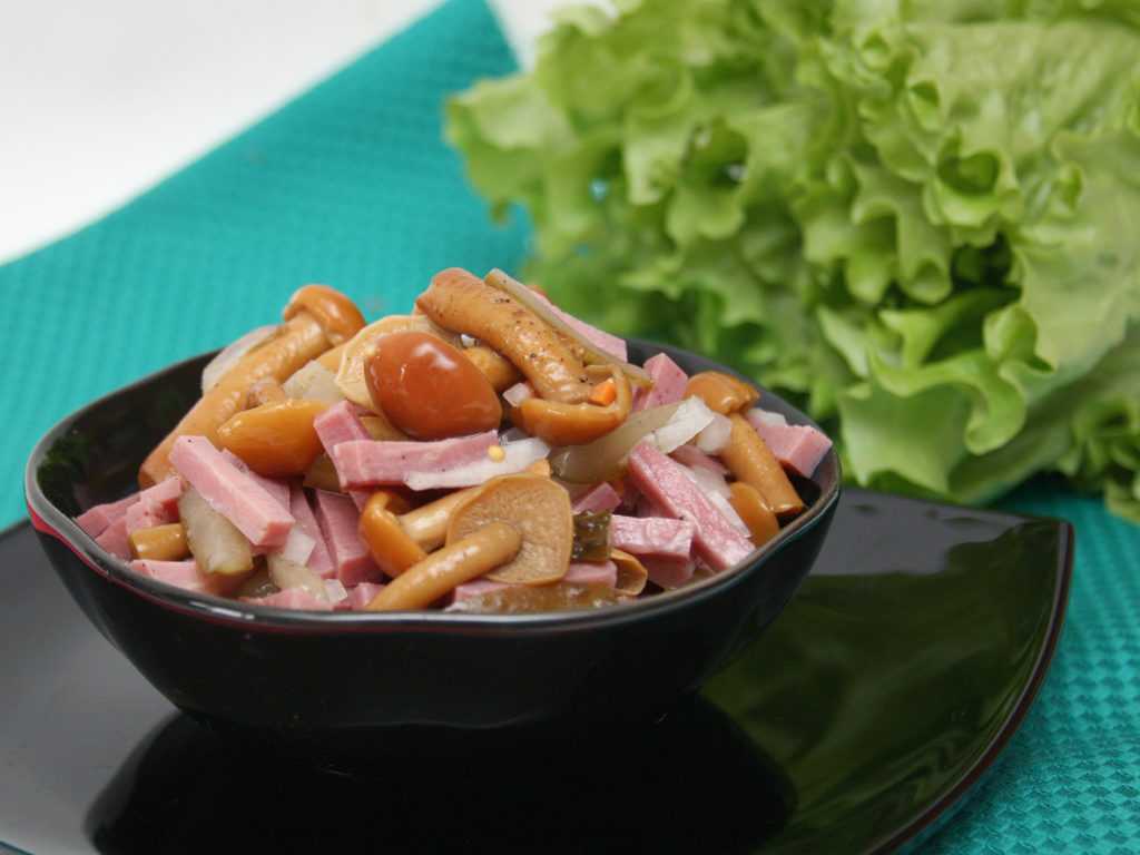 Рецепт 7: салат с ветчиной и маринованными грибами