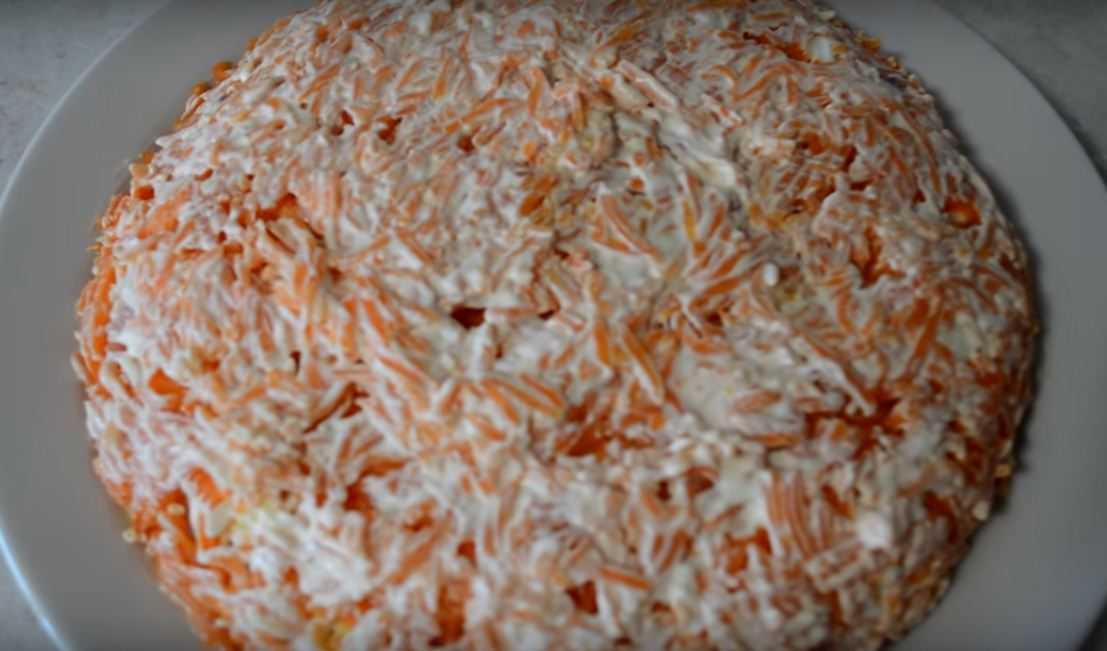 - ещё один слой будет из тёртой моркови, пропитанный майонезом;
