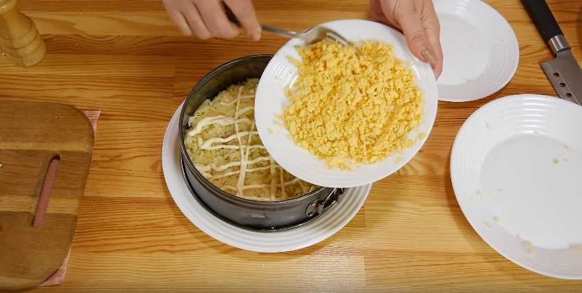 5. В оригинальном рецепте конечным слоем идут натертые яичные белки, но у меня остались ингредиенты, еще раз продублирую слои.